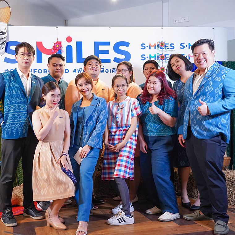ทางบริษัทได้มอบผ้าไทยให้กับพนักงานเพื่อนำไปตัดเย็บตามสไตล์ตัวเอง มีการออกแบบลายผ้า S.MILES ขึ้นมาใหม่และแบ่งออกเป็น 4 สี ตามสีอัตลักษณ์ของบริษัท โดยทั้งหมดเป็นสีธรรมชาติจาก คราม ประดู่ เพกา คำแสด ซึ่งผ้าทุกผืนที่บริษัทสั่งทำได้มีการรังสรรค์จากกลุ่มศิลปาชีพทอผ้าไหมบ้านท่าเรือ อำเภอนาหว้า จังหวัดนครพนม